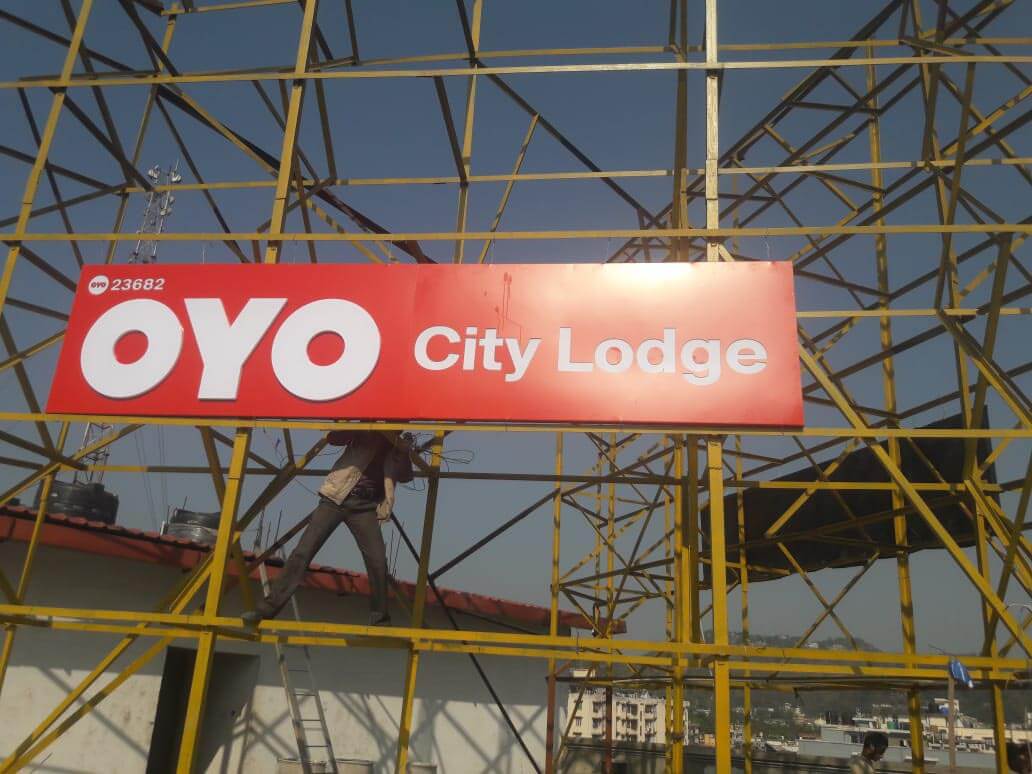 OYO has bestowed us with the work of branding and thus, we executed ACP acrylic LED board – Exterior Branding, Retro Signage, Directional Signage and Flange.